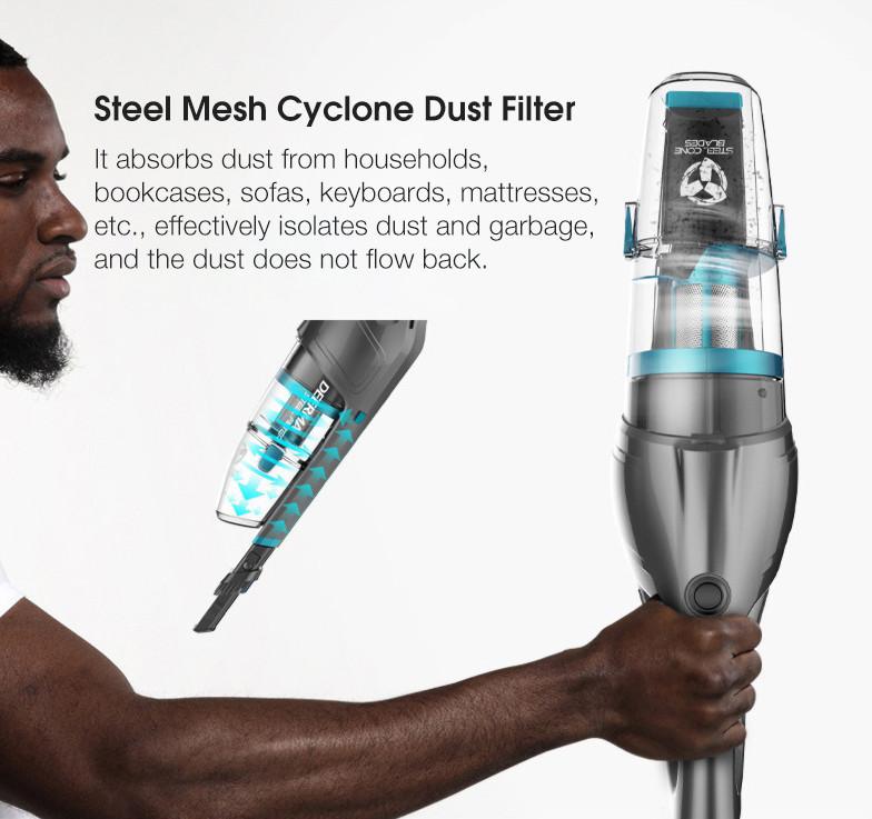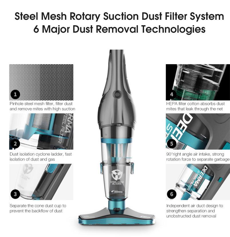 - Máy hút bụi có kích thước vô cùng nhỏ gọn và hoạt động êm ái nhờ thiết kế giảm tiếng ồn, máy hút bụi Deerma DX900 có sử dụng bộ ống dẫn khí hợp lý có hiệu quả giảm tiếng ồn, âm thanh khi hoạt động chỉ khoảng 75dB. Thiết kế nhỏ bạn có thể dựng máy ở bất cư góc nhỏ nào trong nhà như một cây chổi.